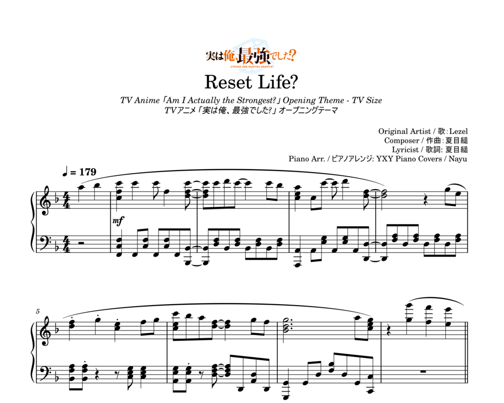 Jitsu wa Ore, Saikyou deshita? OP - Reset Life? (TV Size Piano Sheets)YXY Piano Covers / NayuSGD$0+0sgdPDF OnlySGD$2+2sgdPDF + MIDISGD$3+3sgdPDF + MIDI + WAVSGD$6+6sgdPDF + MIDI + WAV + MuseScore File40sgdName a fair price:SGD$I want this!Add to wishlist New wishlistShare on XShare on Facebook Copy linkCopy product URL